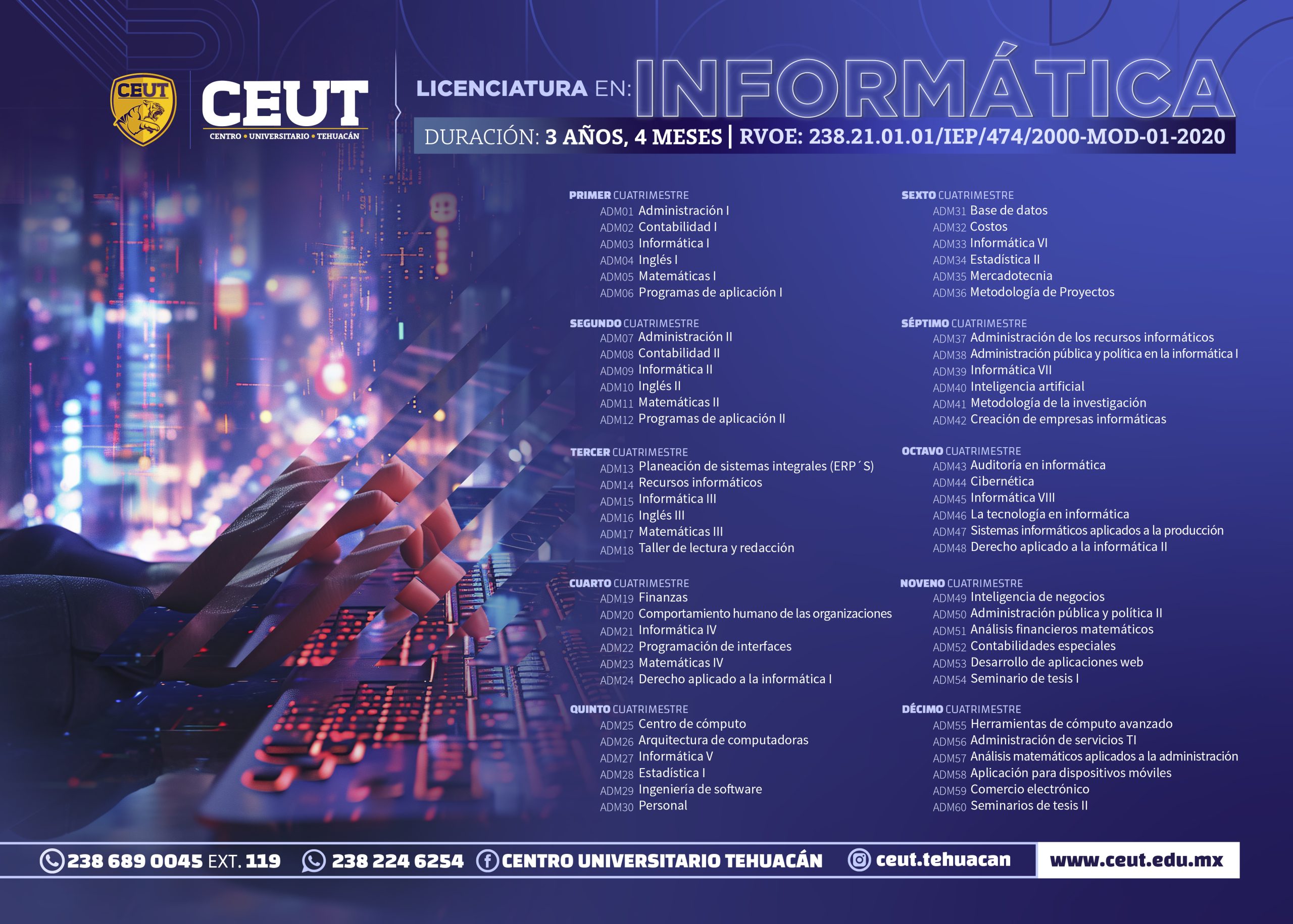El aspirante a cursar la licenciatura en Informática deberá tener: Conocimientos básicos en computación. Análisis de información estadística. Pensamiento matemático y uso de la lógica como método de resolución de problemas comunes. Capacidad de relacionarse para trabajar en equipo. Comprensión de inglés básico oral y escrito. Habilidad en la adaptación y uso de tecnología de vanguardia.